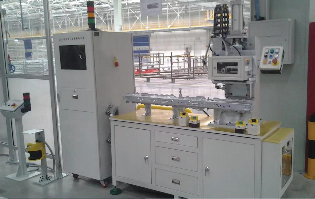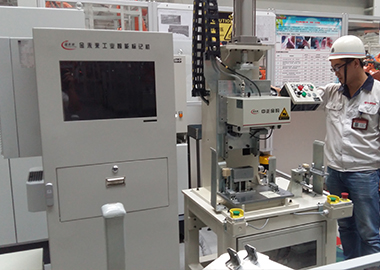 臺式刻劃設(shè)備適用于汽車零部件標(biāo)記,此設(shè)備主要由底架、支撐工裝、本體、標(biāo)記頭、夾具等構(gòu)成。工作時操作者將需標(biāo)記的零部件放到支撐工裝上,通過檢測開關(guān)檢測工件放置到位,雙手啟動設(shè)備進行標(biāo)記。